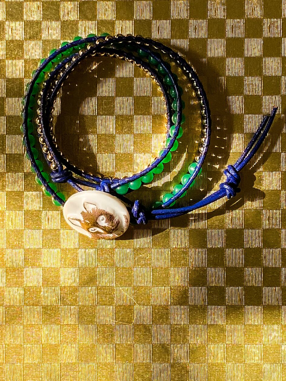50cm,53cm(2stage length adjustable)/glass button(Czech)/glass round beads(Czech)/copper round beads/genuine leather strap(Japan)