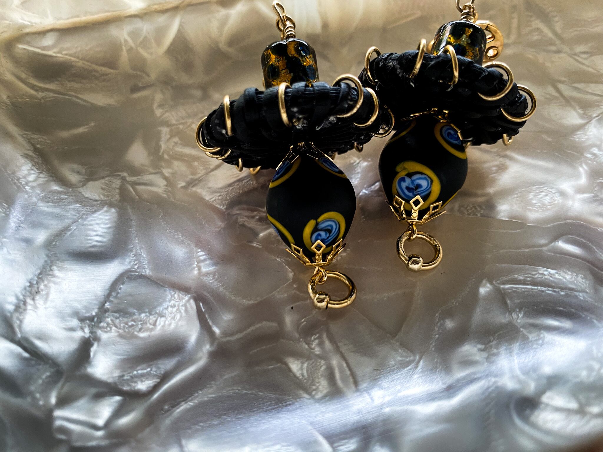 イタリアの美しいガラスビーズとラタンパーツを使ったイヤリング。