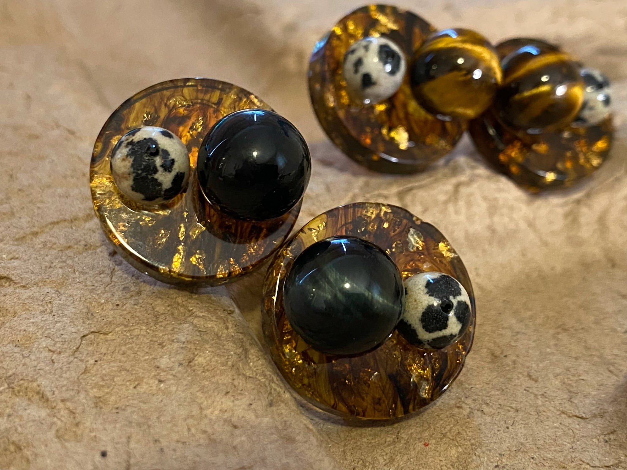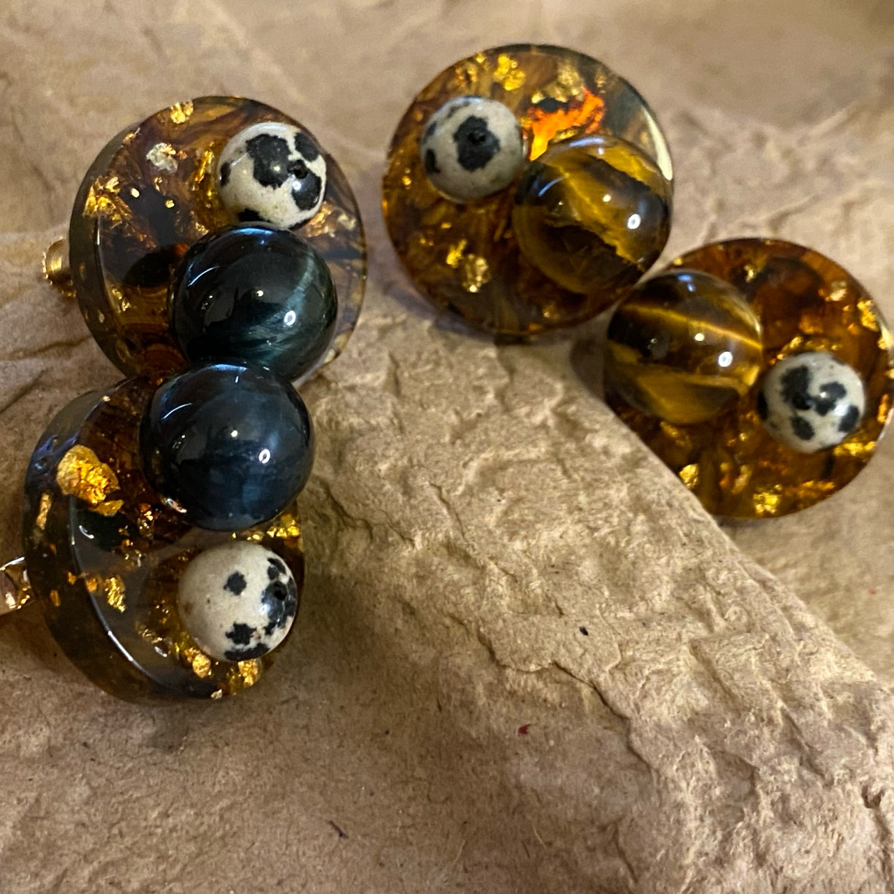 アクリル,レジン,イエロータイガーアイ,ブルータイガーアイ,ダルメシアンジャスパー,真鍮