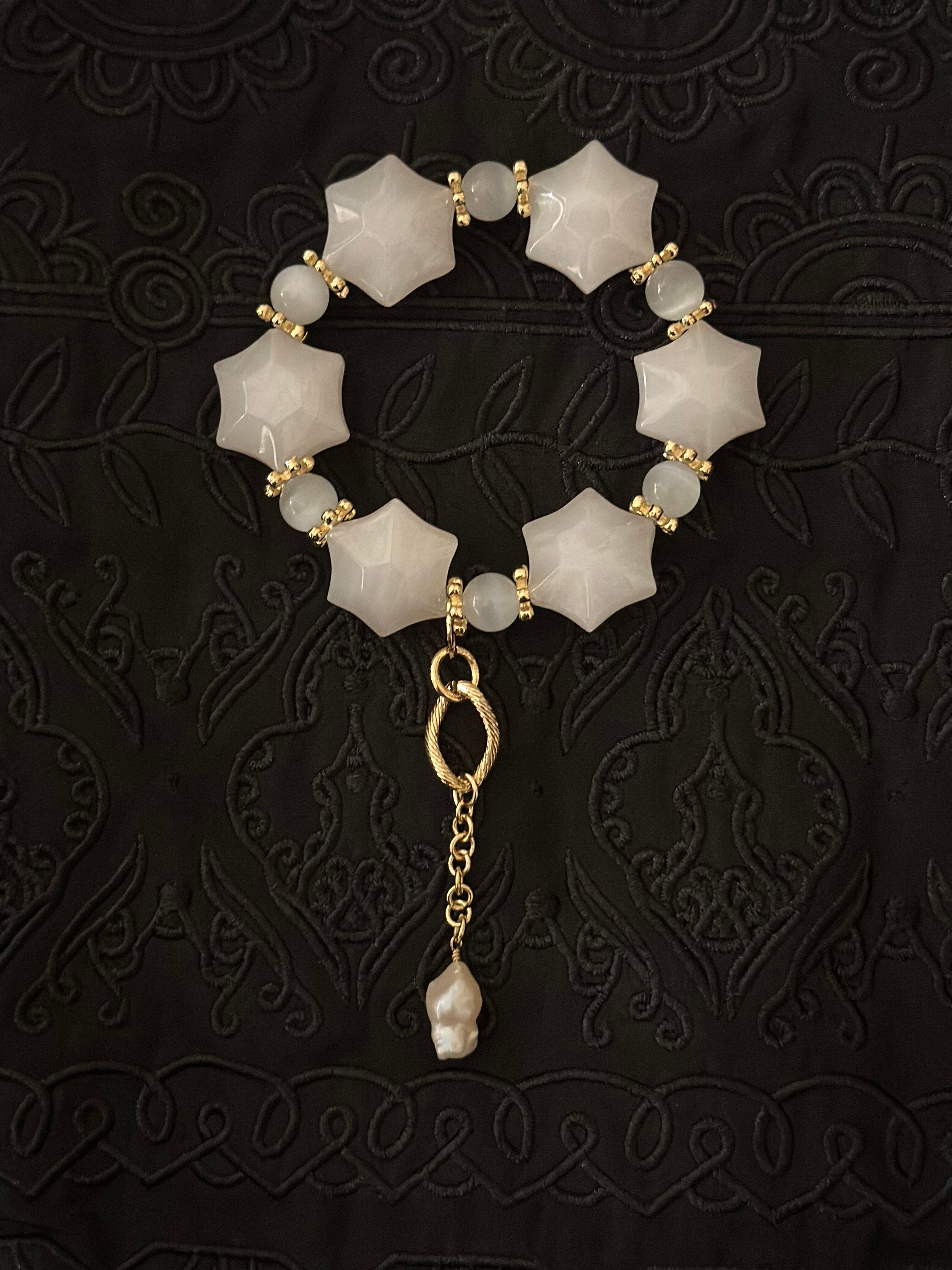 この星のようなホワイトオニキスに惹かれ、仕入れたまま1年程閉まってあったもの。