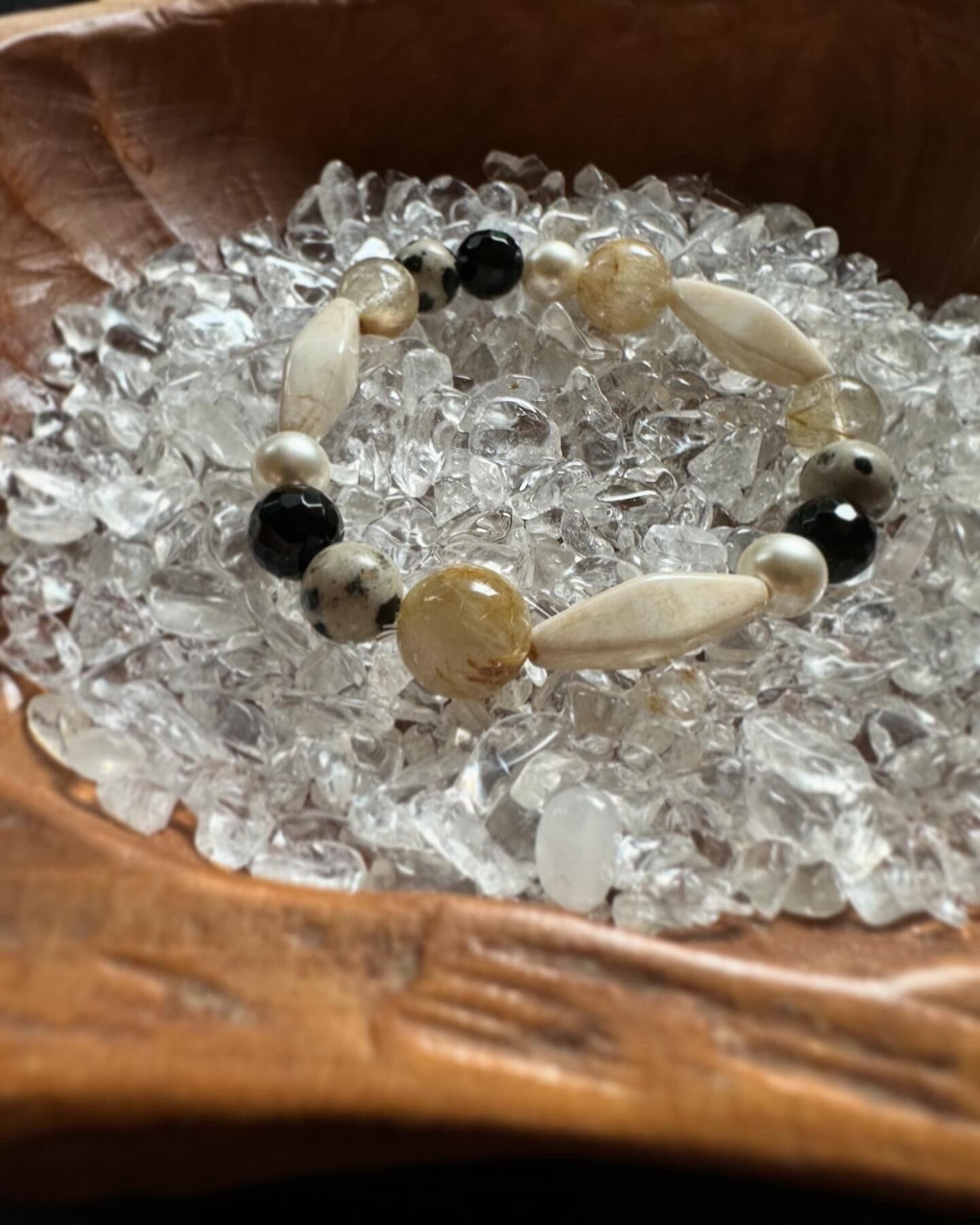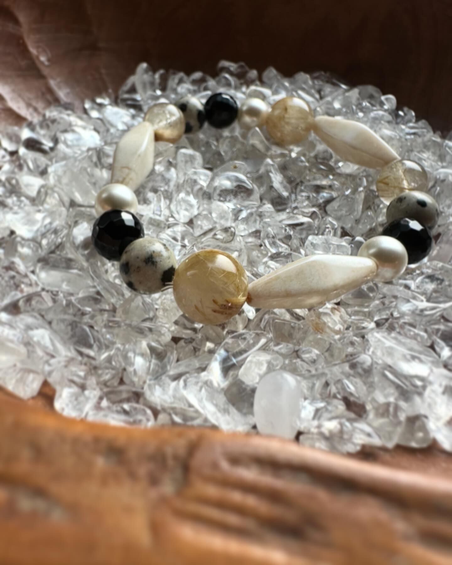 これらを組み合わせて出来たブレスレットは、あなたの芸術性や魅力、個性を高めてくれることと思います。